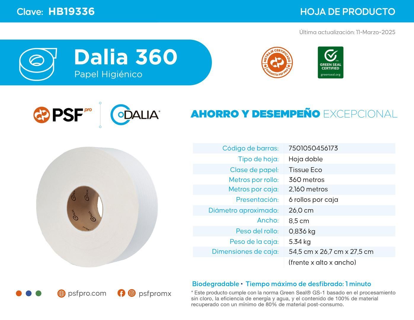 El Papel Higiénico marca Dalia® ofrece un higienico en bobina que brinda al usuario blancura y suavidad en cada hoja,papel hecho con fibras 100% recicladas además, se desfibra rápidamente por lo que es seguro depositarlo en el WC sin el riesgo de obstruir tuberías pues se desintegra por completo en el agua.